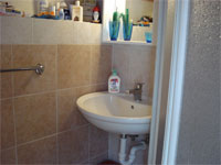 gelegenen Badezimmer. Das Bad ist ausgestattet mit Waschtisch,
