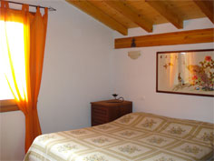 Schlafraum mit Doppelbett und abgetrennt mit einem Wandschrank die
